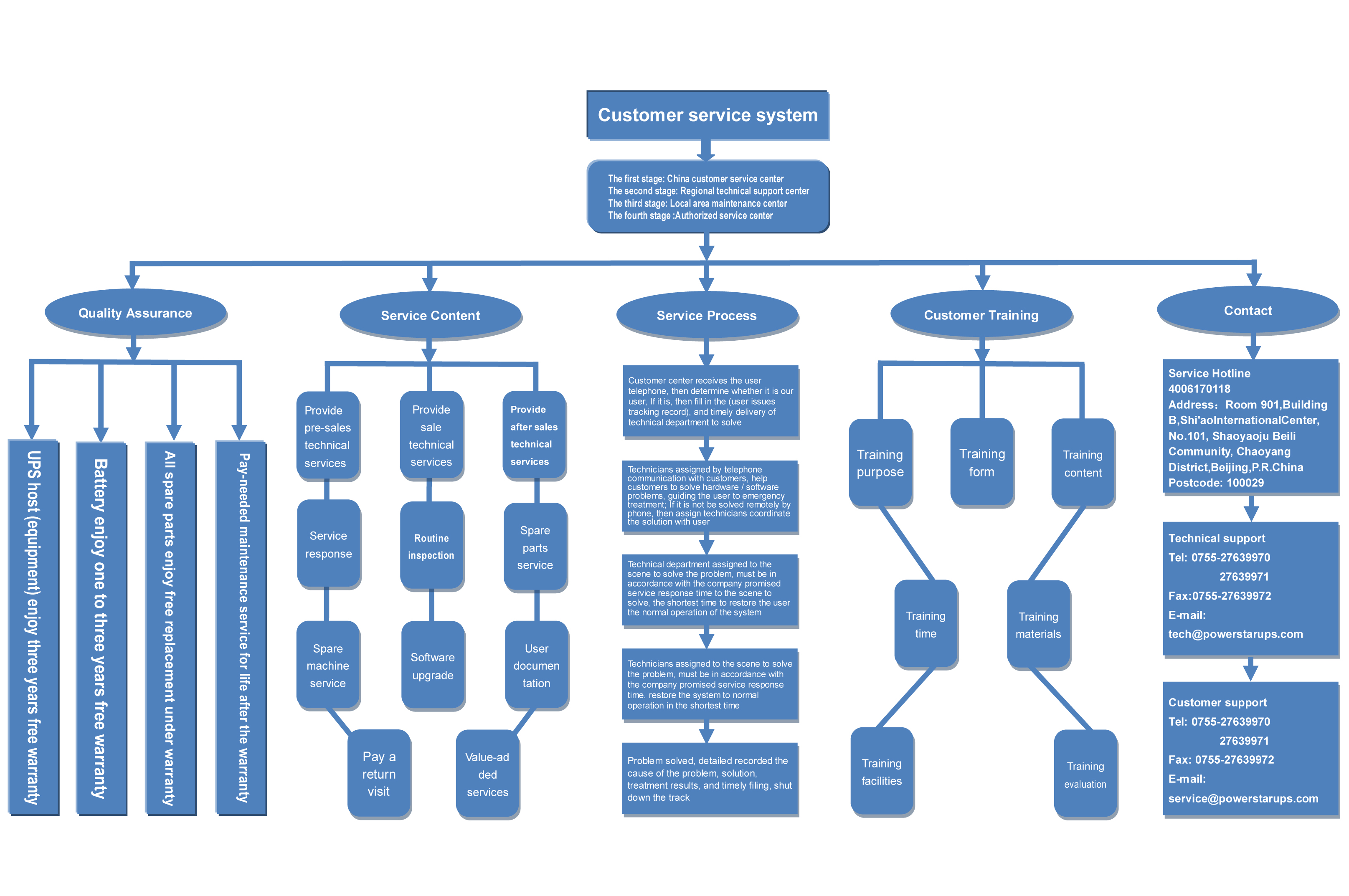 (2)Operation training: From the practical operation of training, the operators of users can have the UPS system software & hardware and relative power distribution of operation at their finger ends, after the training the operators are able to make the precise operations for UPS system software & hardware under the daily and emergency conditions. The main courses of training are: