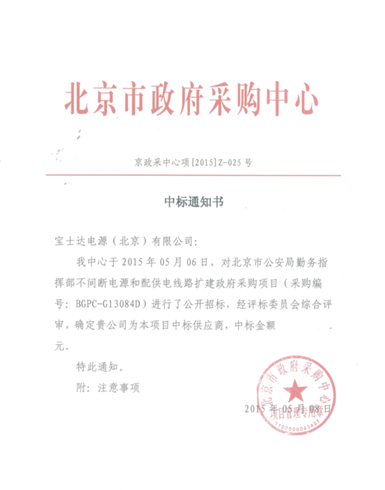 近日,寶士達UPS電源以創(chuàng)新的、完善的UPS冗余并機供電解決方案和高效的技術(shù)服務(wù),成功中標北京市公安局勤務(wù)指揮部不間斷電源和配供電線路擴建政府采購項目,為北京市公安局勤務(wù)指揮部數(shù)據(jù)中心供電系統(tǒng)提供全面的、安全的、可靠的不間斷電力保障。