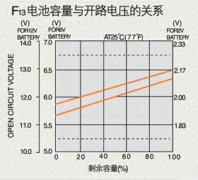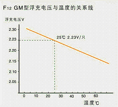 當(dāng)溫度高于或低于25℃時(shí),浮充電壓應(yīng)校正,校正系數(shù)-3mv/℃/單體。F12為電池浮充電壓與溫度的關(guān)系。